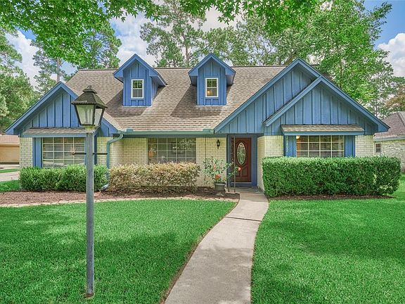 Charming 2 story home nestled in Oak Ridge North! Spacious den that opens to the formal dining room make this home perfect for entertaining! Updated kitchen features granite counter tops, lots of cabinet space, & an electric cooktop that can be converted to a gas cooktop. Large living room with a cozy fireplace! The primary bedroom is tucked away on the first floor. Renovated primary bathroom features a huge shower & dual sinks. 3 secondary bedrooms are located on the second floor. Secondary bathroom on second floor has also been renovated! Upstairs hallway features two window nooks that are perfect for setting up a small desk or storage space. In-house utility room and half bathroom on first floor near door to backyard! Detached 2 car garage! MASSIVE backyard has a storage shed & relaxing patio (metal gazebo stays w/ the home)! Fenced area in the back part of backyard is perfect for pets! Property line is at second chainlink fence in backyard! Zoned to great Conroe ISD schools!