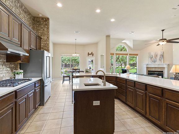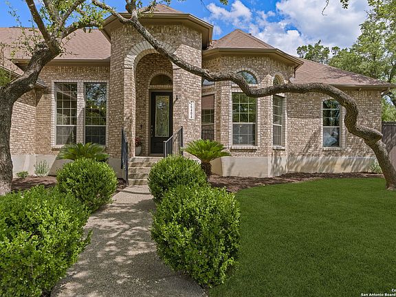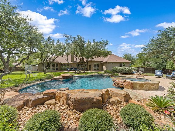 Experience a Staycation right in your own back yard with the 20K gallon resort-style Artesian Custom Pool complete with hot tub, custom boulder waterfall, shallow tanning shelf, in-floor self cleaning system, new high efficiency pump (2025 - $3,000) and a basketball hoop! The pool is surrounded by custom stamped pool decking, landscape boulders, lush landscaping and a beautiful .72 acre corner lot shaded by mature Oaks. The gorgeous Whitestone custom home is equally impressive with hardwood flooring in the living areas & Primary Suite and a newly remodeled Kitchen (2025) with quartz counters, new stainless appliances & gas cooking. The unique & functional floor plan features a spacious Primary Suite & bath split from two secondary bedrooms with a Jack & Jill bath and then a 4th bedroom with full bath is in a separate part of the home - perfect for an In-Law Suite or for guests. The Living Area has high ceilings, is open to the Kitchen and has a corner fireplace & a wall of windows with a view of the pool. The home has two A/C's & two Hot water heaters (one is tankless) and the Study, Game Room & Dining Room completes the package. The side entry, oversized garage also has a workshop space for the handyman and an additional storage room. Clementson Ranch is a small gated community with a country feel just minutes from everything you need, no city taxes and fantastic Comal County Schools! The home is move-in ready and is made for entertaining!
