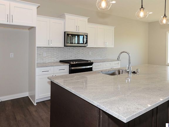 Upscale townhome development by Manion Construction. Most units are on walk-out lots backing to sod farm w/open spaces & great views. The unit features universal design concept: zero entry, wider doors, low-profile walk-in tile shower, wide staircase etc. Over 2,700 finished sq.ft., 3 beds/3 baths, extensive use of granite/tile/LVT, taller ceilings, partially covered deck w/ composite boards & aluminum railing. Space on main level is efficiently maximized by open kitchen/living/dining concept. Spacious master suite features double sink vanity, walk-in tile shower & large walk-in closet. Kitchen w/ granite/quartz countertops & tile backsplash, gas stove, center island, corner pantry, LVT flooring in kitchen and dining room. Mudroom/Laundry separates living area from garage. Walk-out basement offers a bedroom, full bath, huge (27'x21') family room w/wet bar & large storage. Finished garage. Full sod & UGS.