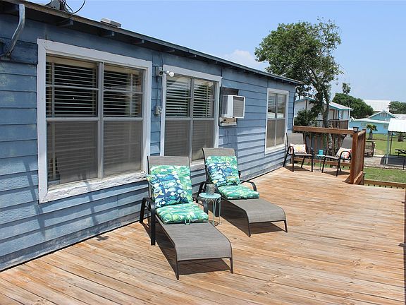Make this fully furnished home with water view, gorgeous sunsets and a relaxing southern breeze your Bay house. This sq foot home with large upper deck, offers an open kitchen /dining, and living room open concept with 1 large bedroom with multi beds.. Downstairs has full bath, washer dryer hookups, possible 2nd bedroom. Detached metal garage for boat storage. Corner lot with 3 gorgeous palms.