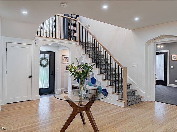 Welcome to this exceptional, fully renovated brick colonial in the heart of Shaker Heights—where timeless architecture meets modern sophistication. From the moment you enter, you'll be drawn in by the home’s cohesive design, where natural light dances across gleaming hardwood floors and soft white walls. Carefully curated accents add subtle pops of color, lending a fresh, contemporary edge to the classic aesthetic. The main level showcases an expansive open-concept layout, ideal for both everyday living and entertaining. A gracious living room flows effortlessly into an inviting dining room. The beautifully updated eat-in kitchen features soft leathered granite countertops, a center island with breakfast bar, premium appliances, and abundant cabinetry. Additional highlights include a cozy, wood-paneled sitting room and a stately office with a private entrance and nearby half bath—perfect for remote work or refined hosting. Upstairs, the palette deepens, creating a serene and luxurious atmosphere. The expansive primary suite impresses with its spa-inspired bath and generous walk-in closet. Three additional bedrooms provide exceptional versatility—one with an ensuite, two connected by a Jack-and-Jill—along with a charming sitting area and an additional walk-in closet. The finished attic offers a fifth bedroom, a fourth full bath, and two flexible bonus rooms—perfect for guests, creative pursuits, or quiet retreats. The lower level is thoughtfully designed for comfort and leisure, featuring a stylish rec room, wet bar, billiard room, chic half bath, and an updated laundry room that brings ease to daily routines. Located just minutes from Shaker Lakes, University Circle, and Downtown Cleveland, this stunning home is point of sale compliant and seamlessly blends classic elegance with modern convenience in one of the area’s most coveted neighborhoods. A rare opportunity—schedule your private showing today.