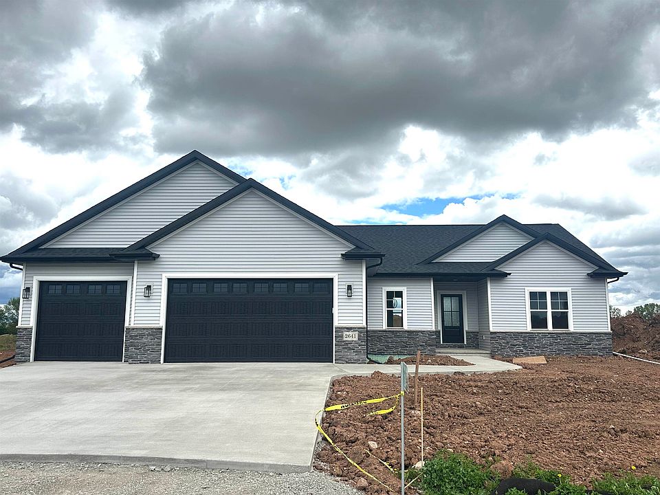 Glorious 3 BR 2 Bath COLORADO model built by VANS Construction, w/ covered back porch - in new subdivision in near Neenah High School - on over a 1/2 acre lot! Terrific curb appeal outside is matched by awesome floor plan & top-notch amenities ... beginning with large living room showcasing cathedral ceiling & gas fireplace & shiplap to top of fireplace wall. Inspiring kitchen w/ granite countertops & tile backsplash. Primary Suite features shines w/ walk-in closet, private bath. The 9' ceilings on the main floor are sure-to-be-appreciated. Simply incredible covered back porch! Central Air & soft-close drawers, too. HUGE BONUS: Street, curb, and gutter are paid by the developer in this subdivision, Scholar Ridge Estates. Move in READY!