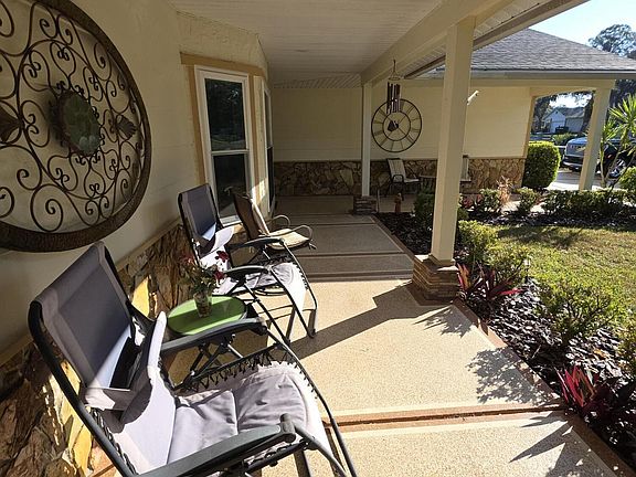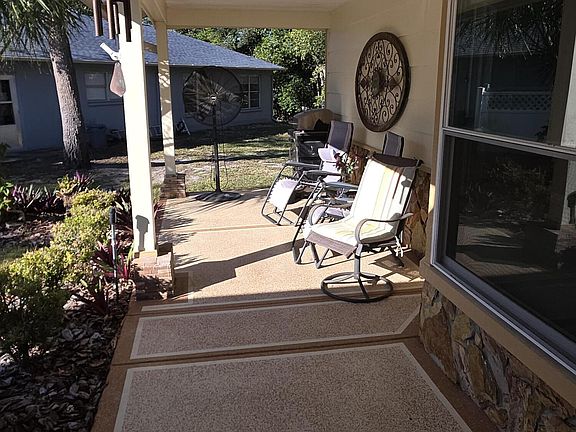 Timber Pines Totally Rebuilt Interior And Remodeled Home. Roof, A/C, Hot Water Heater, Electrical, Etc. All replaced in 2021.- Enter The Home From The Front Porch To The Lead Glass Front Door To The Formal Living And Dining Rooms- There Is Also A Great Room- The Eat In Kitchen Has Stainless Steel Appliances, Dual Sinks And A Pantry- The Primary Bedroom Has A Walk In Closet With A Shelving Organizer And A Tiled Walk In Shower- There Is Also An Enclosed Porch Overlooking The Private Yard- Inside Laundry Room With A Wash Tub And A Storage Closet- Extras Include A Stenciled Driveway, Screened Garage With The Flooring sealed With An Epoxy, Attic Storage, Irrigation Well, Interior Paneled Doors, Ceiling Fans, Open Floor Plan, This Home Is Like Living In A New Home, Call Today For A Showing. Timber Pines, a 55+ Gated Community, With 4 Golf Courses, Country Club, Remodeled Restaurant And Bar With Multiple TV Screens, 2 Pools, Fitness Center, Tennis And Pickle Ball Courts, Bocce Ball, Billiards Room And More Than 100 Different Clubs. Spectrum Cable, 2 boxes and High-Speed Internet Are Also Included In the HOA.