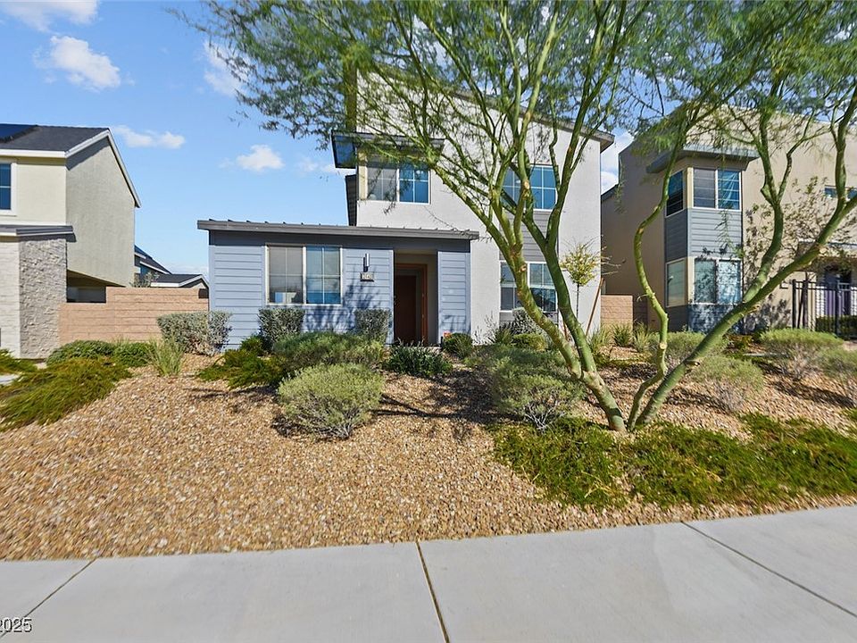 Experience a relaxed lifestyle in this modern home, full of designer touches, natural light & open spaces. Features ample upgraded cabinetry, quartz countertops & island, SS appliances, and walk-in pantry. It seamlessly connects to the dining area & great room, making it perfect for entertaining. Step outside to enjoy two covered patios or take a refreshing dip in the sparkling pool and spa. Enjoy evenings around a fire pit or a built-in barbecue with bar seating. A downstairs suite offers the flexibility to serve as an extra bedroom or a home office. The elegant primary suite is located on the second floor and features an ensuite bath with dual vanities, a spacious walk-in shower designed for two, and a large walk-in closet. You'll also find two additional bedrooms, a laundry room with shelving, and a generous loft area. The Inspirada community provides a variety of recreational opportunities. Looking for luxury and style? This home is for you!