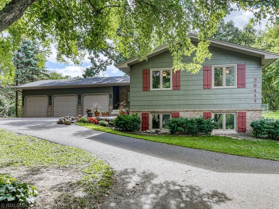 Fantastic home on a corner hilltop lot. Surrounded by trees this home offers too many features to mention. Spacious open floor plan on the main level. Three bedrooms conveniently on the same floor. Large 4 season porch with skylights and many windows. Open kitchen area with breakfast bar and dining area. Cozy fireplace, wet bar area, and spacious lower level with bath. Great for entertaining. The insulated and heated garage is a hobbyist dream space. Wonderful outdoor spaces for additional hobbies and toys!