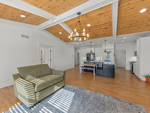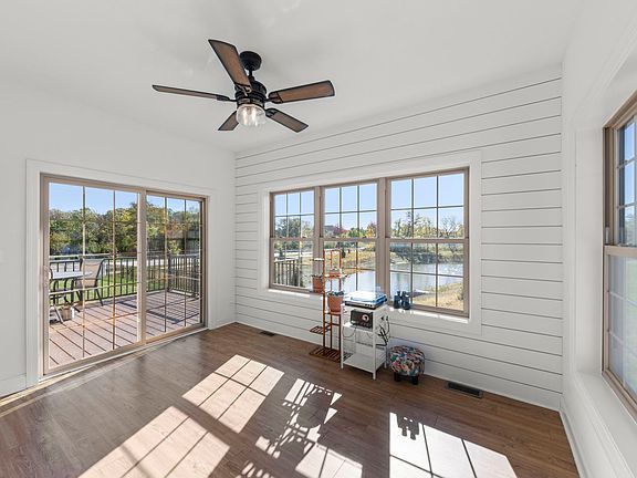 Gorgeous corner fireplaceSprawling ranchCrown mouldingMaster suiteSituated on a pondExpanded sun roomStorage closet