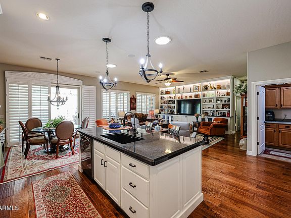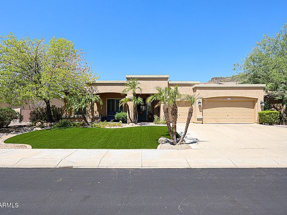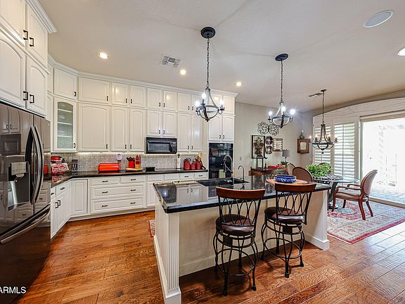 One of the best lots in Stetson Hills. Last time on the market it sold the 1st day. Can you believe it, they remodeled almost everything. New white cabinets, new granite countertop, RO drinking water system, 100 bottle wine chiller, real wood plank flooring, office built out to perfection. Master has travertine shower and countertops plus huge walk in closet with built ins. Garage has built in cabinets and Epoxy flooring. Now to the outside. Great covered patio overlooking solar heated pool and hot tub up to the mountain. Pool is fenced and surrounded with pavers. Out door fireplace, Show, your clients will not be disappointed