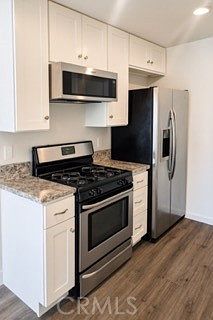 Welcome to this beautifully updated and private 3-bedroom, 2-bath single-story end unit. With only one shared wall, no neighbors above, and no homes directly in front this rare find in such a desirable community won't last long! Step inside to a spacious, open floor plan with laminate wood flooring throughout. The stylish, modern kitchen has self-closing cabinets and drawers, granite countertops with a unique bar-height counter perfect for gatherings and entertaining. Stainless steel appliances and a sleek stainless steel sink add to this impressive design. This home boasts recessed LED lighting throughout the kitchen, living area, and hallway. The primary suite features a generous walk-in closet, while both bathrooms offer custom tile work, granite countertops, and brushed nickel fixtures for a fresh, contemporary look. Enjoy outdoor living in your private, fenced-in patio, complete with a planter box and apple tree. The patio opens to a large, open grassy area, giving you tons of space to relax or play. Additional features include: Extended detached single-car garage with storage rack, second assigned parking space right out front, and access to community pool. This home truly has it all - comfort, style, space, and an abundance of community amenities. Don't miss your chance to live in this prime location turnkey gem!