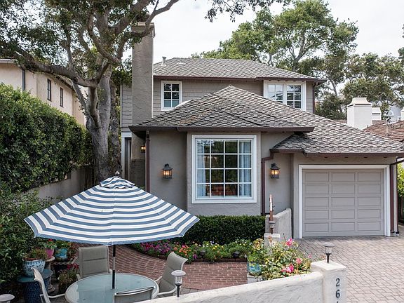 Perfectly Placed on the Point! Wonderfully private, Country English cottage overlooks the sanctuary preserve, Santa Lucia mountains and all the way down the Valley. The living room is bright and sunny with big windows & skylights, hardwood floors, high beamed ceilings and large fireplace. The kitchen with Calacatta quartz counters has two 30 inch Sub-Zero refrigerators, a separate breakfast nook with patio access and the dining room is light and bright with patio and garden access. Lovely, private back patio and gardens as well as a private front patio allow you to enjoy sunshine from morning to late afternoon....all this and only steps to the beach and the famed Scenic Drive.