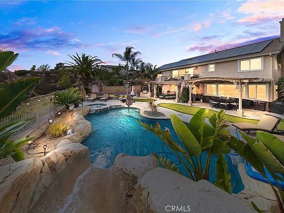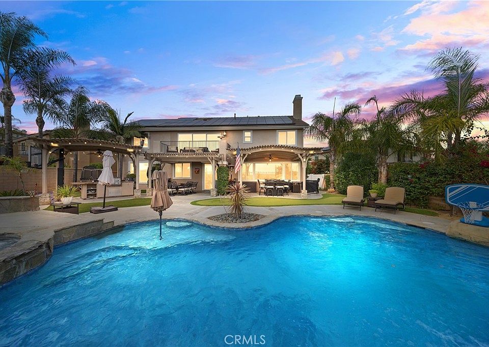 Welcome to this stunning 6-bedroom, 4-bathroom home with SOLAR nestled in the prestigious, guard-gated community of Greer Ranch in Murrieta, CA. Perfectly situated on a quiet cul-de-sac, this residence offers breathtaking panoramic views, exceptional upgrades, and a true entertainer’s backyard oasis. Step inside and you’ll immediately notice the abundance of natural light and elegant finishes throughout. The open-concept floor plan features a spacious living area that seamlessly connects to the gourmet kitchen—complete with modern appliances, granite countertops, and ample cabinetry. Downstairs, you’ll find two bedrooms, one with its own private full bathroom, ideal for guests or multi-generational living. Upstairs, four additional bedrooms and a large loft provide space for relaxation, work, or play. The primary suite is a luxurious retreat, showcasing a custom-designed bathroom with a unique shower and sauna combo, creating a spa-like experience in the comfort of your own home. Step into the backyard and discover your private paradise — a sparkling pool and spa, a built-in putting green, and a basketball court, all surrounded by scenic hillside views and lush landscaping. Whether hosting gatherings or enjoying a quiet evening under the stars, this outdoor space has it all. Greer Ranch is known for its 24-hour security, scenic walking trails, parks, and community pool and clubhouse, offering the perfect blend of privacy and community living. Conveniently located near award-winning schools, shopping, and easy freeway access, this home truly has it all.