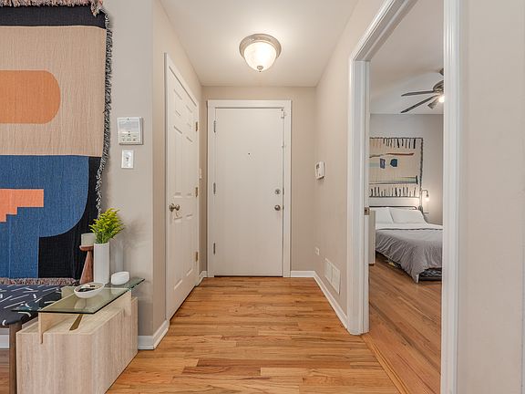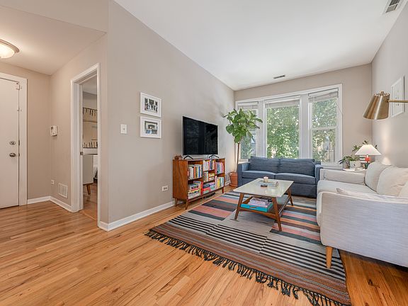 Come fall in love with this charming two-bedroom, one-bath condo, located just north of Logan Boulevard. With warmth and immaculate style, this updated unit welcomes you with an abundance of natural light, complemented by hardwood floors. The recently renovated space offers a well-thought-out layout in the living and dining area, as well as a primary bedroom with a reach-in closet and space for a dresser. The dining room offers ample space for a formal table as well as extra cabinetry. The modern, bright kitchen was updated in 2018 with quartz counters, new tile, backsplash, sink/faucet/garbage disposal, and new dishwasher (purchased in 2019). The kitchen is equipped with stainless-steel appliances and tall cabinetry- perfect for both cooking and entertaining. It opens to a private balcony, providing ample room for relaxation, entertaining, and enjoying stunning sunsets while grilling - this is what makes this unit unique. The second bedroom offers versatility in its usage. Additional features include in-unit washer and dryer, new furnace (purchased in 2019) equipped with Nest smart thermostat, walk-in coat closet and a convenient and spacious storage area in the basement. Ample street parking is available. The neighborhood offers a vibrant atmosphere with a variety of restaurants, coffee shops, nightlife options, shopping destinations, and a farmer's market within walking distance. This condo is a commuter's dream, offering quick access to the Kennedy Expressway and public transportation. Nestled on a tree-lined street in the heart of Logan Square, this condo truly has it all. It's time to move in and savor the best of Logan Square living on the Boulevard!