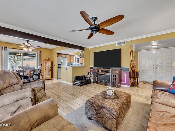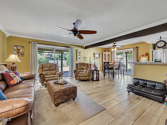 Welcome to Sun Lakes Country Club, a premier 55+ active adult community offering resort-style living with golf, tennis, pickleball, heated pools, fitness center, and even fishing in scenic lakes! This beautifully updated Toltec model features remodeled bathrooms, upgraded flooring, granite countertops, custom millwork, and a newer AC unit for year-round comfort. Enjoy peaceful living in a vibrant community just minutes from dining, shopping, and major freeways. LOAN MAY BE TRANSFERABLE-ask for details.