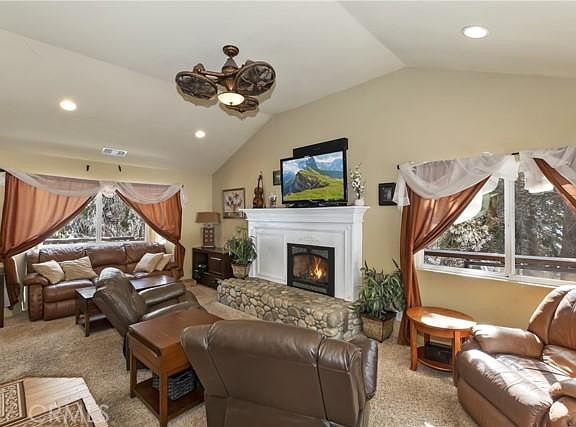 Wonderfully remodeled 3 bed/2ba level-entry home in the Mountain area of Lake Arrowhead. Great commuter location, just 20 minutes down the hill, but worlds away! Blue skies and pine trees surround this immaculate home that enjoys the unique features of plenty of level parking plus the heated 2 car garage AND fenced/level yard.. incredible opportunity to finally move on up! Main-level also has 2bedrooms and full bath so no need to deal with any stairs if you dont want. Lower level has master suite, indoor laundry, plus family-room that could be 4th bedroom if needed. The large, level and fenced yard is great for the kids or pups! This home was recently all updated and upgraded, absolutely move in ready outfitted with newer dual-pane windows & zoned heating systems AND A/C for your comfort and full size spa out back for your relaxation too! Kitchen, baths, flooring and fixtures all newer including cabinets, granite counters & SS appliances. All of this on a plowed/maintained road with all public utilities and just minutes to the villages of Lake Arrowhead & Blue Jay.