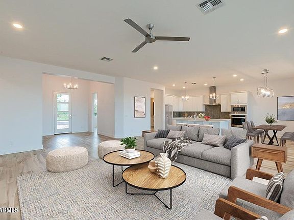 Welcome to your modern farmhouse retreat in Queen Creek! This beautifully built home sits on a fully fenced 1-acre lot with horse privileges and no HOA. The owners have since added professional front landscaping for extra curb appeal and easy maintenance. Step inside to an open, inviting layout with wood plank tile floors, a gourmet kitchen featuring 42'' cabinetry, white quartz countertops, a 36'' cooktop, and built-in stainless steel oven and microwave. The luxurious primary suite offers a spa-like bathroom with a freestanding soaking tub, modern glass shower, and dual vanities. Built with quality and efficiency in mind, this home features spray foam insulation, Pella windows, and premium Trane 14 SEER AC units for year-round comfort. From its superior construction to its serene desert setting near the San Tan Mountain trails, this home blends modern living with Arizona charm ready for you to move in and enjoy.