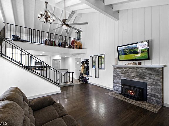 Welcome home to one of the best price per square foot home for sale in Rimforest. This 3 bedroom, 1.75 bath home is the perfect escape for nature lovers, adventure seekers, and anyone craving a peaceful lifestyle with unforgettable views. Step out onto the expansive deck and take in the breathtaking, unobstructed panorama. Your backyard is the National Forest, so no neighbors behind you, just miles of pristine wilderness. In the summer, watch hang gliders drift by on warm breezes, and in winter, enjoy the perfect backyard sledding slope for endless fun. Inside, the home features a bright, open concept layout with soaring ceilings and a huge loft that overlooks the spacious living room. Cozy up by the fireplace on snowy evenings or gather in the sun filled kitchen that's perfect for entertaining. Whether you're relaxing or hosting, this home offers comfort with a rustic mountain charm. Nature is your neighbor here. Frequent visits from deer, foxes, and even the occasional bobcat make every day feel like a scene from a nature documentary. The land is bursting with native plants, herbs, and mushrooms, a forager’s paradise right outside your door. For peace of mind during winter months, there's a generator transfer switch installed. When it comes to fire safety, a fire hydrant just inches from your property line at the end of the driveway gives added protection, a reassuring feature in the mountains. Whether you're looking for a full-time residence, weekend getaway, or an income generating rental, this property is the perfect blend of adventure, tranquility, and security. Seclusion while having convenience at your fingertips. You have a hardware store, post office, vet clinic, entertainment and much more within walking distance. Don’t miss this rare opportunity to own a slice of wilderness with modern comforts and a view that will never be built out.