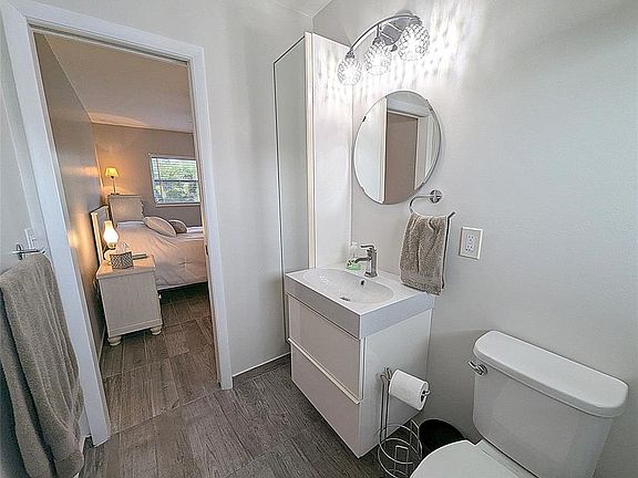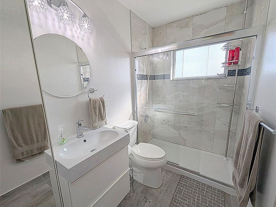 LOVELY IMPECCABLE RENOVATED 1 bed /1.5 baths VILLA/CONDO well located behind the Clubhouse's pool* Splendid UPDATED modern Bathrooms* Kitchen: White cabinets, recessed lights, ceiling fan, GFCI & NEW IMPACT window* Nicely FULLY FURNISHED & TURNKEY* TILED floors THROUGHOUT* NEW Water Heater 2022* NEW ROOF & gutters* Enclosed porch with STORAGE* Backyard with PATIO for BBQ* One PET NOW accepted* Parking at your front door* HOA fee of $422/month includes Water, Cable, Pest control, Building insurance, Reserve & access to all amenities* This 55+ Community of CRESTHAVEN - BARKLEY offers a Clubhouse with large heated pool, Fitness center, Cards room, Billiard, Library, Shuffleboards, Bocce & Auditorium* Few minutes from PBI airport of WPB, restaurants and all commodities* Must see!