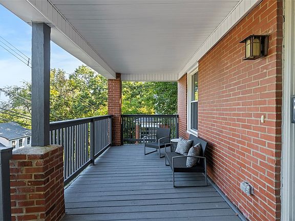 Walk up to the covered front porch, you’ll immediately feel the inviting charm of this beautifully updated home. Step inside to an open-concept layout featuring LVP floors that flow throughout the entire home, complemented by tall windows that fill every room w/ natural light. The spacious living room effortlessly transitions into the kitchen & dining area. The kitchen is equipped w/ SS appliances, granite countertops, a large kitchen island w/ seating, ample cabinet space, & sleek modern fixtures. The main level also features a stylish half bath. Upstairs, you'll find 3 generously sized bedrooms, each w/ large closets. The updated full bath offers a modern design w/ sleek tiling & a tub-shower combo. Step outside to discover your own private outdoor retreat. The expansive deck is perfect for entertaining or enjoying peaceful mornings. Located on a quiet street in Dormont, this home is a rare find. Don’t miss your chance to make it yours!