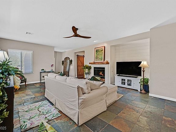 Well-maintained Single Story , 3-bedroom, 2-bath home in the popular Anthem Highlands community. Brand-new air conditioner and heater installed in 2025. The kitchen features granite counters, upgraded cabinets, and new stainless steel appliances. Updated fixtures, an upgraded bathroom vanity, slate floors, and new waterproof luxury plank flooring give the home a warm, modern feel. Charming touches include barn doors, shiplap accents, a custom fireplace mantel, and a craftsman-style pantry door. Enjoy the covered back patio with high privacy walls and a cozy front courtyard. Spacious walk-in closet in the primary suite. Dramatic mountain views greet you from the entrance. Close to parks and walking trails—this home blends comfort, character, and location perfectly. Come see why Anthem Highlands is one of Henderson’s most loved neighborhoods!