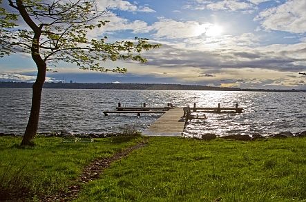 This street-to-water estate on 62 feet of lakefront is found in the heart of Medina. Drive up to 1.03 acres of lush landscape & past the sport court. Sitting atop the water, views of Seattle & the mountains are seen from almost every room. Spend summers on the dock. Build your own beach house. Have movie nights in the remodeled media room. Approved remodeling plans available for main house. Guests can reside in the 1 bedroom guest house, finished in 2006.