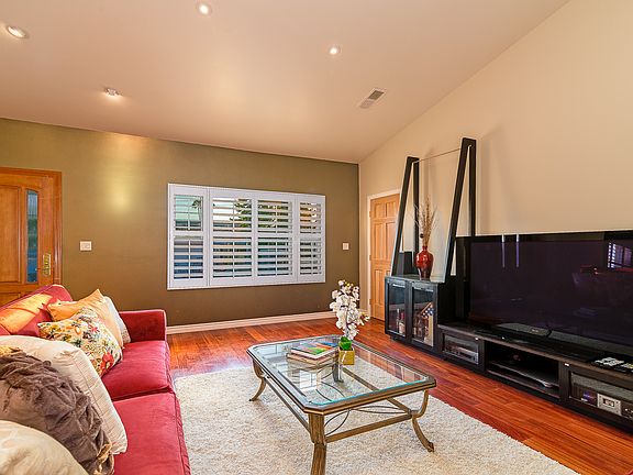 As soon as you walk through the front door, your eyes are immediately captivated by the open floor plan built for entertaining, high pitched ceilings providing a nice open feel, and gorgeous hardwood flooring. The luxury kitchen boasts plenty of storage space, high-end stainless steel appliances, remote-controlled vellux skylights, and a center island/breakfast bar making food preparation and organizing simple and easy. A large pantry/laundry is conveniently located adjacent to the kitchen. Surrounded by fresh avocado and citrus trees, the large backyard complete with a water feature is absolutely perfect for throwing a BBQ for the family and friends or for simply relaxing in your own private atmosphere while enjoying the cool ocean breezes. The large master bedroom boasts a comfortable sitting area with an on-suite bathroom, which includes a soothing dry sauna and whirlpool bath. This home also offers a bonus room, which can easily be converted into a 4th bedroom, with its own private deck offering amazing views of the city! The detached 2-car garage has ample storage space for all your family treasures and seasonal decorations, plus RV parking and is wired for Wi-Fi and 100A Power Service. Upgraded features include all new plumbing, recently upgraded roof, and brand new high quality energy-efficient windows throughout to maintain cooling throughout the year. Additionally, this home was designed to accommodate an outdoor kitchen for all those cooking lovers. An A/C “line set” was pre-installed during the remodel to accommodate an easy and much less expensive upgrade to A/C. This home conveniently offers quick access to major freeways!