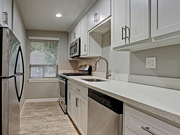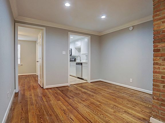 Updated 1-1 in 4-plex. Hardwood floors, custom built cabinets with quartz counter tops, new stainless steel appliances including microwave. New ceiling fans, 2" wood blinds, and recessed lighting. Bathroom has been updated with new tub, toilet, pedestal sink and designer tile.