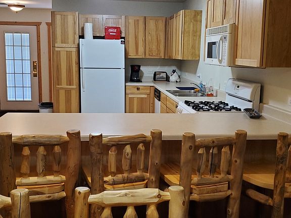 Welcome to historic and charming Utica! FULLY FURNISHED 1800 sq ft 2 BEDROOM, 2 BATH TOWNHOME villa in Grand Bear resort featuring open kitchen, dining and living room. Two gas fireplaces. Balconies on each bedroom, in-unit main floor laundry; WIFI, Cable and internet service, water, garbage, snow removal lawn care and most of exterior are covered by the HOA fees. HOA removed and updated roof with higher quality shingles and also stained siding, and resurfaced parking lot in Fall of 2024. Master suite has a fireplace, whirlpool tub and separate shower. Completely furnished down to the utensils and linens, large and small appliances, TV's decor and more! This is the perfect property to enjoy year round, as a home away from home or as an investment vacation rental~Opportunities galore. Great location..Faces huge front yard with mature trees yet on dead end street for privacy while still being a short walk from water park and Bear Island. Explore and enjoy Starved Rock State Park, Matthiessen State Park, Buffalo Rock, Vermillion River, white water rapids, Illinois River, plus several wineries, hiking, water sports, great restaurants and much, much more! All just minutes from I-80 & I-39.