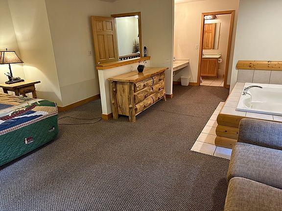 Own your own vacation or year-round townhome in Grand Bear Resort. You will get plenty of natural light in this end unit! Sleeps 9-10, 2 bedrooms, 2 baths, 2 balconies, large kitchen with breakfast bar, 2 fireplaces, laundry hook-up on main floor, jacuzzi, master bedroom with walk-in closet, completely furnished. Common area includes mini-golf, indoor water park, pool, et.
