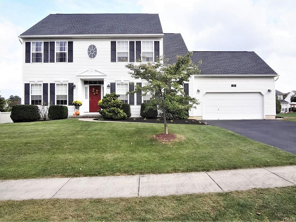 PUT THIS ON YOUR MUST SEE LIST!! 4 BR, 2.5 bath Vinyl sided Colonial features Entry Foyer open to 2nd flr , French doors in Living room (currently used as a home office). Dining room used as a den/music room. Open Concept Kitchen/Family Room. Kitchen w/ Yorktown Oak cabinets, Center Island, stainless steel appliances new in 2020. Gas FP in Family Room. His & Hers walk in closets in Mstr Bedroom. Mstr Bath has dbl sink vanity, whirlpool tub, separate room w/shower & toilet. Many ceiling fans throughout house. New composite flooring in 2020 installed in family room, kitchen, laundry & bathrooms. Sliding door in kitchen dining area leads to a large brick patio w/retractable awning. New roof in 2015, new air conditioning unit in 2019. Some finishing touches would make the basement a perfect mancave as the walls are studded, overhead lighting & wall outlets installed. Whitehall code inspection clear of violations. Minutes to shopping & Route 22, short walk to school complex.