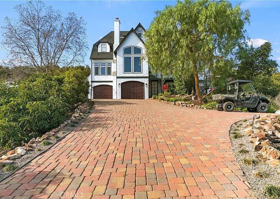 Simply Magical! This delightful custom DeLuz home has been meticulously remodeled with pure artistry in mind. Sitting high atop its private 5 acre hillside, this 3-bedroom 2,718 sf. ft. home lives artfully. The owners suite features extraordinary hillside views and private deck, stacked-wood wall feature, electric blinds, large master bath with dual brass sinks, motion-sensor Hotel Collection mirrors, makeup vanity and huge walk-in shower. Just outside the master is my favorite room in the house, the retreat. Imagine evening nightcaps overlooking the valley while cozying to a warm fire. The gourmet kitchen is simply beautiful, featuring all Viking appliances, custom cabinetry with space saving pull-outs, black walnut decorator shelves, quartz countertops, pot-filler, views and breakfast countertop seating. Upstairs are two large bedrooms and delightful loft space. You will love the custom plank flooring throughout. Lastly, downstairs you will find wine storage, pantry, (and safe room) along with a fully decorated 2-car garage. Resting place to our sellers stunning Ferrari!