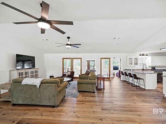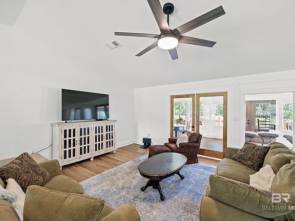 Newly renovated waterfront home in Elberta NOW ON MARKET! With over 100' on the water just off of Hammock Bay, enjoy the serene natural playground for dolphins and blue heron with a short boat ride to local attractions such as Pirate's Cove, The Wharf and Barber Marina. Home has recently been updated to include a new Bronze Fortified roof, new HVAC, new windows, new tankless water heater, new appliances, flooring, new granite countertops, plumbing and some updated electrical. Floor plan is split with an expansive master suite and beautifully renovated master bath including luxurious tile shower and soaking tub. Open concept kitchen and living room make this home perfect for entertaining! Relax in the conditioned sun room with stunning tongue and groove pine ceiling and enjoy the view of the lush yard and peaceful bayou that includes a boat dock, perfect for pulling up your vessel. You'll fall in love with this quaint community called Fish Trap! Tucked away from the hustle and bustle, yet a short drive whether by boat or by car from all of the action on the Gulf Coast of Alabama! Buyer to verify all information during due diligence.