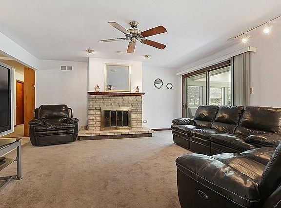 Unincorporated Crete at it's finest! Already passed FHA appraisal! 1.65 acres of rolling green grass & mature trees, this SPACIOUS 3 BR 2.5 bath ALL brick ranch is true country living! A picturesque setting, with a backyard stretching way beyond the barn, this home will be the envy of your friends and family! New $10,000 driveway leads to your attached 2 car garage AND bonus SHED, complete with room for a workshop & even a half bath! PLUS a large red barn w/ electric! Inside, the rooms are HUGE, check out the dining room/living room combo! Cozy family room w/ wood burning fireplace leads to peaceful screened in porch. Kitchen w/ SS appliances & breakfast nook/window seat. Large master w/ double sinks & walk in closet. Tons of potential in the oversized main floor laundry/mud room with plenty of storage cabinets! Partial unfinished basement w/ bonus room, pool table negotiable! ZONED newer furnaces, NEW softener, partial new roof, private well/septic (just pumped) move right in! GREAT condition, but selling AS-IS.