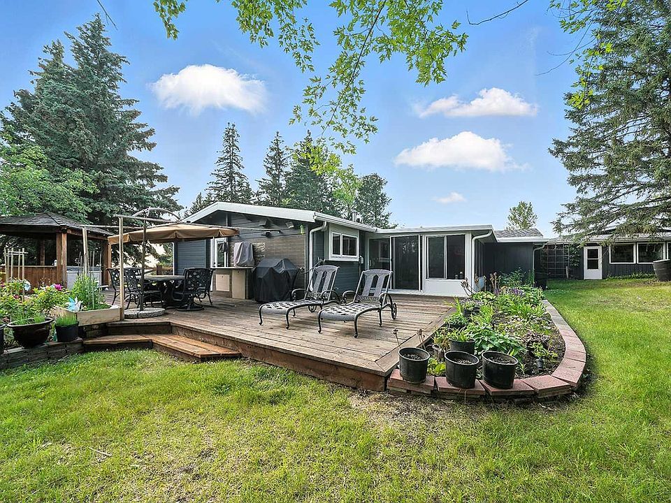 Incredible opportunity to own a piece of paradise just minutes East of Red Deer with breathtaking views of the city! This gated & updated bungalow with cedar accents all throughout is full of charm boasting over 2800 Sq Ft on just under 17 acres. This home is full of character offering three nice size bedrooms including a primary suite fit for King size furniture and a stunning 3pc ensuite. There is tons of space to entertain guests with two large living rooms with amazing natural light all throughout. The stone facing wood burning fireplace is a highlight of the home. The renovated kitchen offers upgraded stainless steel appliances, granite countertops and more than enough cabinet space. There is a large sunroom which is the perfect spot to unwind after a long day OR on the gorgeous wrap around deck that will have you in awe. The property is one of a kind and is full of possibilities. Additional extra features include newer windows (majority), a hot tub, shingles (2 years ago), a newer greenhouse, an oversized double attached garage with full recreation area, water softener, new well pump, tons of landscaping and concrete work and of course the 30x40 quonset, 60x40 shop and additional outbuildings. If a view is important to you then this is something worth viewing! Subdividing possibilities to be discussed with Red Deer County.