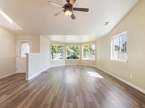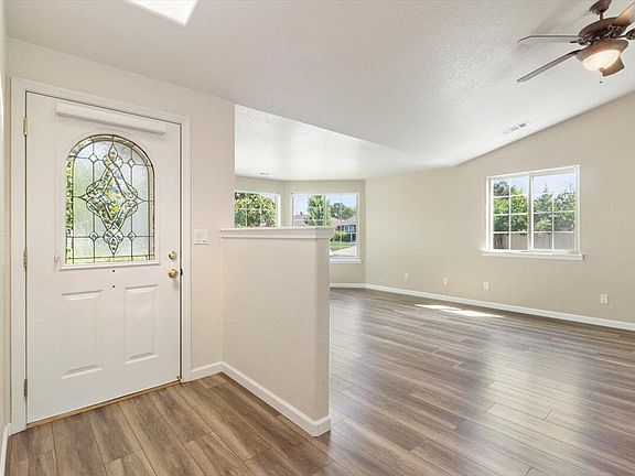 Fantastic single level home in desirable neighborhood w/ large RV parking & full hookups! Nestled on a corner lot this home boasts great curb appeal & pride of ownership. The well-maintained exterior features underground sprinklers, both front & back, along w/ two 2 ft high x 20 ft long raised vegetable garden beds w/ drip irrigation to keep your plants thriving. Step inside & cozy up next to the gas fireplace adding warmth & ambiance to the great rm. Master ensuite offers a comfortable retreat complete w/ dual shower heads, walk in closet & covered patio area. Enjoy the convenience of custom silhouette blinds, leaf gutter guards, & luxury vinyl plank floors. Vaulted ceilings & large windows allow lots of natural light to flood the interior creating a bright & inviting atmosphere. Sale includes washer, dryer, & fridge making moving in a breeze. Additionally, you'll love the short walk to Don Jones Memorial park which offers sports facilities, a splash pad, & playground. Don't miss out