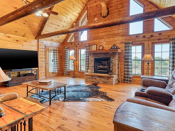 Tucked away in the serene countryside of Russellville, KY and located in the Adairville school district, this stunning log home offers the perfect blend of rustic charm and modern comfort on 8.5 partially wooded acres. Crafted from hand-harvested Engleman Spruce logs sourced from the Rockies, this home boasts unmatched craftsmanship and attention to detail. A full wrap-around porch invites you to take in panoramic views that stretch all the way to the state line—on clear days, the scenery is breathtaking, and come July 4th, you’ll enjoy a front-row seat to fireworks lighting up the horizon in every direction. Inside, the home features four spacious bedrooms—two on the main floor and two upstairs—with ensuite bathrooms in both the primary and upper-level bedrooms. An additional full bathroom on the main level offers convenience for guests and easy access to the nearby laundry room, which includes a built-in ironing board. The home is equipped with two HVAC units, four skylights, and generous walk-in closets throughout. The kitchen is a chef’s delight with custom hickory cabinetry, all lower cabinets featuring pullout shelves, and a spacious pantry closet. Aspen wood ceilings and walls throughout the main floor pair beautifully with clear-coated red oak flooring. The centerpiece of the living area is a beautiful gas fireplace, featuring sandstone from local Costello Stone and finished with decorative rock. It's fully automatic and includes two emergency shut-off valves for safety. In the master suite, you'll find maple flooring and cabinetry, as well as additional aspen woodwork. The master bath includes his-and-hers walk-in closets and a luxurious Jacuzzi tub with an auxiliary heater to maintain a consistent water temperature. An oversized two-car garage offers plenty of room for vehicles and storage, while a massive 60x40 detached garage/workshop with a concrete floor is ready for your projects—already plumbed for a bathroom and wired for electricity. There’s also a fenced dog area for your four-legged friends. An additional 5.43 acres can be purchased with the property, providing even more room to roam and expand your country lifestyle. This is a rare opportunity to own a truly unique home that offers privacy, comfort, and sweeping views in every direction.