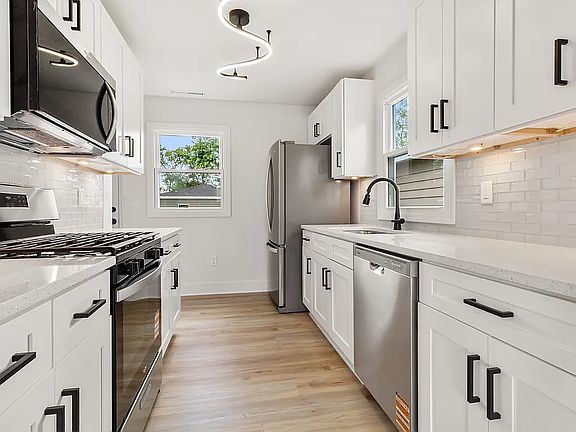 Step inside to find new flooring throughout and a completely remodeled kitchen featuring new cabinets, countertops, and appliances, including a new refrigerator, dishwasher, and stove. The light fixtures have been updated to modern styles, enhancing the home's ambiance.