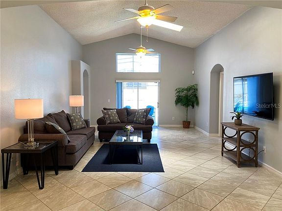 This one story pool home is truly a Happy House. Fully furnished - just bring your tooth brush and clothes! Check out the virtual tour video and you will see why you will be all smiles in this adorable 5 bedroom ( 2 master suites) and 4 full bath home that has attached two car garage. Over 2100 sq ft of furnished living with screened in pool for only $325,000 in area behind the new Sun Set Walk by Margaritaville - this home may be utilized for full time living, air bnb, long or short-term rental so lots of flexibility - Great flow to this open and airy home. Call now as we don't expect it to last long