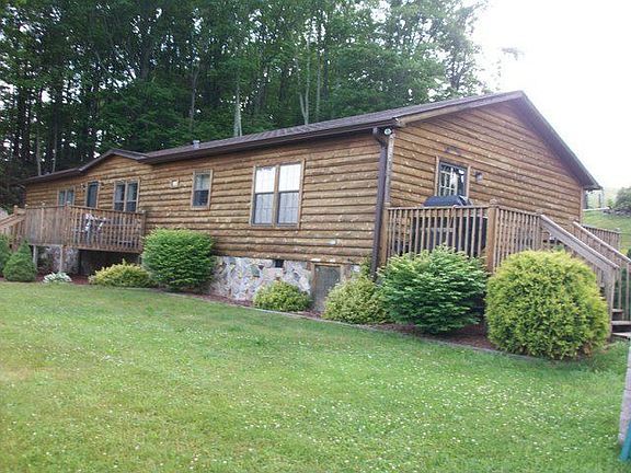 This is a very nice double wide on a permanent foundation, exterior is wood siding for that mountain look. It is hard to believe that this is a double wide. There is a detached 3 car garage/work area, parking area as well as a camper site equipted with power and septic hookup. A really cute cellar with play area, or studio, built over the top of it. This home is in a quiet area in the Matney community. Paved road access with 2 driveway entrances to property. Only 6 miles to downtown Banner Elk or 6 miles to Valle Crucis School, the park, and Watauga River, and Mast Store.
