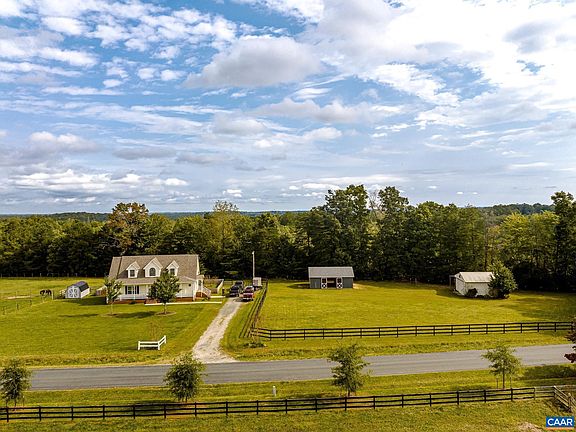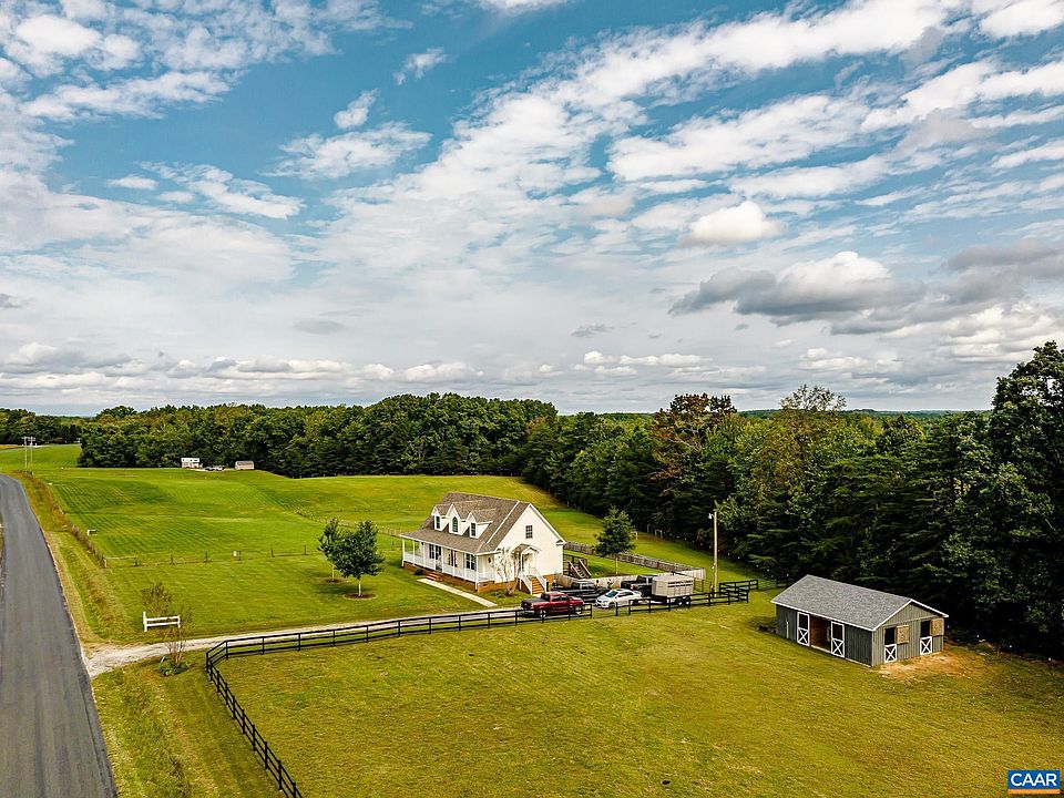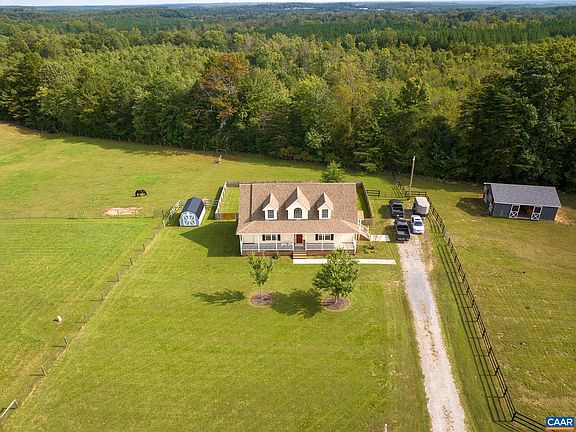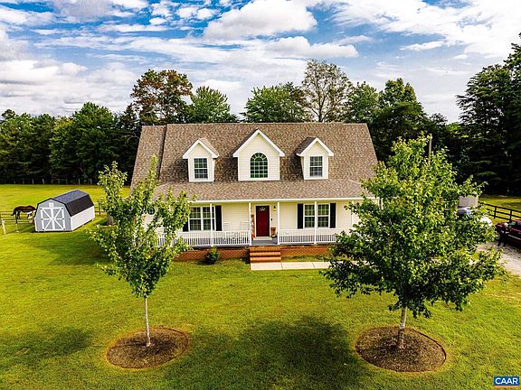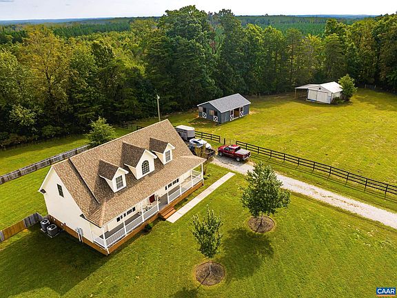 Bring the animals and come enjoy country living at its best! Surrounded by mountain views and pastures, this lovely 4-bedroom, 3-bath Cape Cod home with a horse barn and additional outbuildings rests on two lots, totaling almost 8 acres—the majority of which is fenced pasture. The covered front porch is the perfect place to relax and take in the mountain views with your favorite beverage. The lay out of the home features a main-level floor plan with tall ceilings, crown molding, and a semi-open layout. The first-floor primary suite includes a large walk-in closet and an en suite bath with a soaking tub and separate shower. There is also a second bedroom and full bath on this level. Upstairs, you'll find two spacious bedrooms and a third full bathroom. The back deck is surrounded by a new wooden fence separating the back yard from the pastures beyond. The newly constructed 3-stall center-aisle barn includes a tack/feed room, electricity, and water. The large garage building is ideal for vehicle and equipment storage with a concrete floor and a separate lean-to for additional covered storage. Country living with modern conveniences. You can have it all AND still stay connected with high-speed Firefly internet!