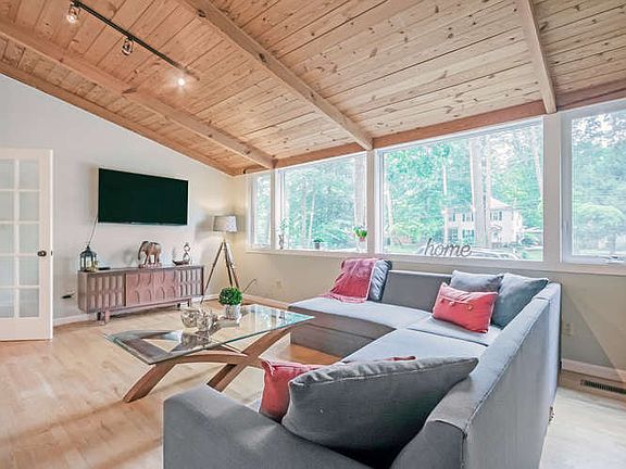 Not your typical rental, owner occupied well maintained property 5 minute walk to stores, restaurants and park in Durham. 3 bedroom, 2 bathroom architecturally significant mid-century modern on half acre, rental available in mid-June. Upstairs has 1 full bath up and 1 bedroom, large vaulted kitchen / living room area and tons of natural light from walls of large picture windows as well as access to a large 300sq ft brand new deck. Downstairs has 2 bed, 1 full bath and a laundry room so large it is currently also used as an office. Landscaping requires minimal maintenance, with ample free parking out front (pad and separate driveway), and large very usable backyard with a 20x30' leveled landscaped pad. Owner occupied until now, many upgrades in 2024 including brand new HVAC (gas pack heat + AC), Brand new roof including insulation, new refinished hardwoods upstairs, brand new 300 sq. ft deck, landscaping and drainage, wifi thermostats, smart home connected backyard lights (if desired). Currently has a 12 x 24' above ground pool, plan would be to drain and remove it for renters but maybe can negotiate something if you are really committed to maintaining it. Plan is to provide unfurnished but possibly some flexibility for the right tenant, open to small caged pets only (no dogs or cats), also potential flexibility to the move the lease start date back a few weeks to mid-June. Rental is responsible for utilities, 12 months least