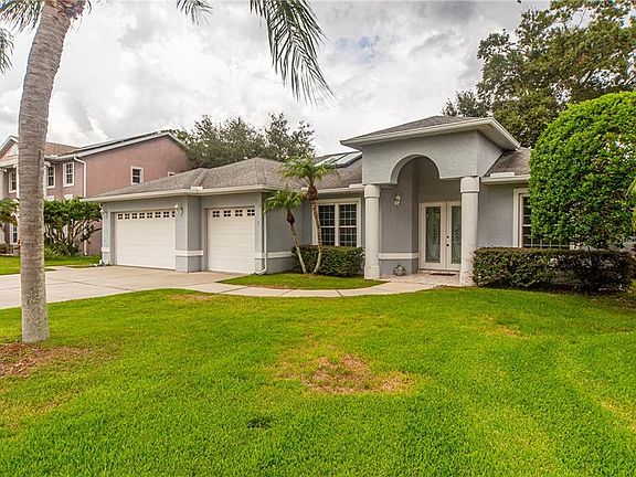 Come see this beautiful 3 bedroom / 2.5 bathroom / 3 car garage home on a cul-de-sac. Home is nestled in this exclusive gated community with just 12 homes. Enjoy security and privacy tucked away from noise and traffic but just minutes from US 19, Tampa Road, Shopping, Dining, and Beaches. Enter the home and you are greeted with10 ft ceilings that take you to a Formal Dining and Living room area with an adjacent Den/Office space that could also be a Nursery. Beyond, the open floor design features a kitchen with beautiful cabinets, Granite countertops with granite backsplash, and stainless appliances. The kitchen includes a breakfast bar area for the whole family to hang out. Open to the kitchen, the family room features sliding glass doors that open to the pool area with a nice covered patio area for entertaining. This home has a split bedroom plan with the master bedroom and bathroom having its own private area. The Master bathroom includes a tub, shower with his and her's sinks. Some features of the home include moldings, high ceilings, cherry wood floors, tile floors, fans, granite countertops, private fenced in yard, mature landscaping, and gated community. A/C replaced in August 2019, Impact Windows (2011), Solar Hot Water Heater (2011). This home is a must-see.