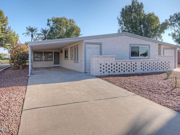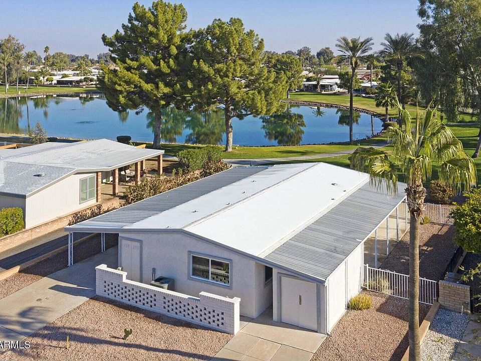 Looking for an Amazing Location on the lake? Here is your chance. This home is a completely REMODELED BEAUTY!- the Kitchen has white cabinetry, granite counters, kitchen island w/sink, black SS appliances, pendant and LED lighting. Bathroom vanities w/granite counters, nickel fixtures. Home was dry-walled with new texture/paint and new energy windows installed. Newer 14 seer Lennox AC in 2019, New water heater in 2020, New roof coating in 2023. Large covered carport with storage shed. This peaceful Lake setting has walking/golf cart paths around the lakes to enjoy. Located in Sun Lakes #1-must be age 45 to purchase. Enjoy the active adult community amenities of a Clubhouse, restaurants, fitness ,spa, golf, tennis, pickleball, bocce ball , 2 swimming pools & more! Ready to Move-In Now!!