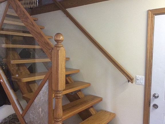 3 bedroom 1 full bath with walking closet in master bedroom and upstairs balcony , Downstairs large kitchen, dinning room, living room with fireplace, sunroom, laundry room, 2 full bath down stairs and 4th bed room has a second master bed room. Outside cover patio with a above 18 x 33 ground pool 5ft deep all around...
