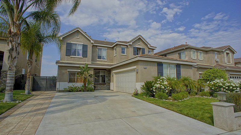 Fantastic Skyview home in Stevenson Ranch with an incredible backyard view. This 4 bed 3 bath home offers 1 bedroom downstairs. Beautiful custom wrought iron and wood staircase leads to an open loft that overlooks the entry and living room below. Formal dining room has coffered ceiling, custom paint and granite flooring. The kitchen, which opens to the spacious family room with fireplace, features tile flooring with inlay, walk-in pantry, granite tile counters & breakfast bar, double ovens, and trash compactor. Upstairs you’ll find dark wood flooring in the loft, hall, laundry room, and 2nd bath. Bedrooms feature upgraded carpet, ceiling fans, and mirrored wardrobes. The master bedroom and bath, which are on the view side of the house, offer a walk-in closet and upgrades including tumbled marble tile and Jacuzzi tub. The back yard features a stamped concrete patio, slate hard scape with fountain, a grassy area, and built in barbecue equipped with a burner and sink. Sit by the fire and enjoy the view from under the Pergola. Other features include ceiling fans in the loft and bedrooms, neutral paint throughout, closet organizers, and security camera. Located on a cul-de-sac, in a great neighborhood, near distinguished schools.