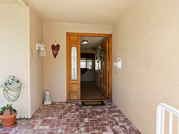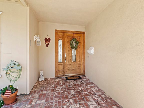Welcome to this lovely move in ready home with much sought after 2 car garage! This home has been meticulously cared for with beautiful touches throughout. Great location with serene views of putting green and majestic oaks. Enter through the custom front door and beautiful brick front porch. Upgrades and updates include plantation shutters and custom window coverings, updated bathrooms, newer kitchen appliances, newer AC unit, vinyl windows, newer water heater and copper plumbing. Master bedroom with attached ensuite, walk in shower, dressing area and walk in closet. Secondary bedroom has its own bathroom with tub/shower and custom vanity. Open living area looks out to the private covered tongue and groove patio. Two car garage has storage cabinets and pull down attic storage Bring your fussiest buyers to this Friendly Valley home and enjoy the golf course, club house, pool, RV storage and all the enmities that this beautiful 55+ community has to offer!