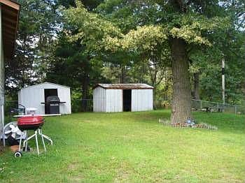 Lake view home on 2 lots, with 2 sheds and an oversized 2 car garage with 240 amp service.