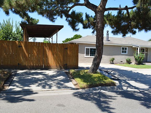 WOW!! 3/2 with LARGE bonus room perfect for in-law unit, in-home day care, or large game/multipurpose room. Lots of storage with large closets. Custom covered RV parking, new carpet & paint, dual pane windows, newer roof, newer A/C, real wood flooring under carpet in hallway and bedrooms. LARGE custom shed and second storage for boat/car or workshop with alley access. Mature fruit trees, lawn and covered patio area for BBQ's!! Cute downtown Ceres location. Seller will provide full Section 1 Pest clearance. Priced to sell!