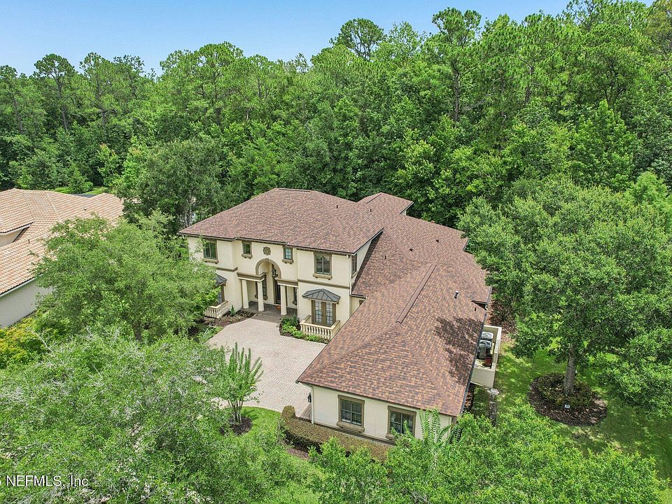 Discover unparalleled Luxury in this exceptional custom-built pool home located in the prestigious King & Bear Golf Course Community at World Golf Village. Situated on a premium preserve lot, this beautifully maintained residence offers serenity, space, and superior craftsmanship. Step into the Grand Great Room featuring soaring 23-foot ceilings and beautiful limestone Gas Fireplace. The open floor plan is complemented by elegant porcelain tile, a gorgeous wood staircase with custom railings, impressive chandelier and expansive living spaces perfect for entertaining. The gourmet kitchen is a chef's dream, showcasing premium stainless-steel appliances, solid wood cabinetry, a walk-in butler pantry, full size laundry room, wet bar with beverage cooler and more... The formal dining area is perfect for special gatherings and there is also everyday dining area room by the kitchen. The spacious first-floor Master Suite includes a private lounge area, travertine & carpet flooring, granite counters, spa like bathroom with double vanities, custom closets and cabinetry. A bonus room offers the flexibility of a private office or live-in help suite/play room. Upstairs features Two Bedrooms - each has its own bath plus a hidden loft ideal for storage. There is also a Second Master Suite with extra room and its own bath with double vanities & large walk-in closet. The pool table / game area completes the upper level and is located on the walkway between the bedrooms. Enjoy year-round outdoor living in the resort-style pool area with waterfall, custom lighting, a summer kitchen, fire pit and a granite bar. This premium lot ensures privacy with lush preserve views. Located within a top-ranked, Arnold Palmer and Jack Nicklaus-designed golf course community. Enjoy world-class amenities: walking trails, tennis, pickle ball, lap pool & family pool, a state-of-the-art gym, pristine lakes, sidewalks, King & Bear Restaurant and more. A new 2024 roof adds value and potential insurance savings. Located a short from Jacksonville, airport, beautiful beaches, and premier shopping at St. Johns Town Center. This home is truly a must-see.... And yes it does have a large 2 car garage with storage.....