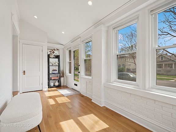 No detail was spared in this classic five-bedroom IMMACULATE brick home on a corner lot in the ideal NW Evanston location. Fully rehabbed in 2023, it combines a modern, sleek aesthetic with original details for added charm. The sun-filled residence offers four levels of living space, catering to today's buyer.  Enter through the lovely sunroom into a welcoming foyer that opens to the rest of the main floor. The spacious living room boasts, light sconces, and a wood-burning/gas log/gas start fireplace, flowing seamlessly into the formal dining room with original built-ins and an open gourmet kitchen, along with a fabulous mudroom.  The second floor showcases a large primary bedroom with an ensuite bath that includes double sinks, a spacious shower with a rain feature, and a skylight. This level also features two additional charming bedrooms-one with two more skylights-and a full bath.  The third floor is full of character, featuring original pine wood floors and 100 year-old banister, and yet two more skylights illuminating two additional bedrooms. The finished basement provides extra living space, including a family room, playroom, office, full bath, and laundry room.    Finally, be amazed by the 1,000+ square foot three-car garage-a car lover's dream. The possibilities are endless; keep it as a garage or transform it into your ideal studio or income property. All of this is located just a few blocks from Central Street shops, restaurants, trains, and the newly redesigned Independence, McCullough, and Howell Parks.
