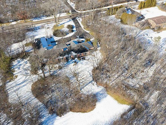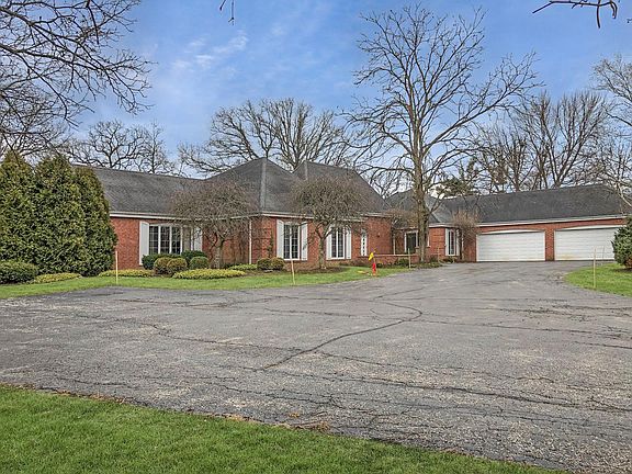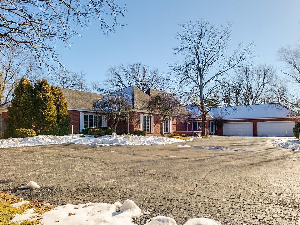 Imagine the possibilities in this sprawling, original builder-owned 4871 SF all-brick ranch with five bedrooms, 5 1/2 baths, a four-car garage, a huge/partially finished basement and a 2.34-acre site, beautifully landscaped with mature trees and many plantings. A gracious large entry foyer with vaulted ceilings opens to the main living areas including the living, dining and family rooms -- all with spectacular views of the expansive grounds and wildlife. The huge kitchen with its delightful large eating area is located at the sunny south end and offers great views from a bay window and yard access through sliding doors to one of multiple rear patios. An office is conveniently-located just off the foyer with an additional fifth bedroom and full bath, ideal for maid's quarters near the kitchen in a service wing providing easy access to the huge laundry room and the attached four-car garage. The family bedroom wing leading north off the foyer area includes three family bedrooms, one with an en suite bath and large walk-in closet. The immense master bedroom suite which is privately tucked at the end of bedroom wing hallway features a grand sitting room with sliders to a patio and backyard, 2 walk-in closets and two more full baths. The huge partly-finished basement includes several large rooms including an exercise room, bonus room, storage room, workshop and mechanical area. Located within minutes of convenient shopping, restaurants and highway, this one-of-a-kind home with nature at your doorstep is awaiting your majestic transformation. House is sold as is.