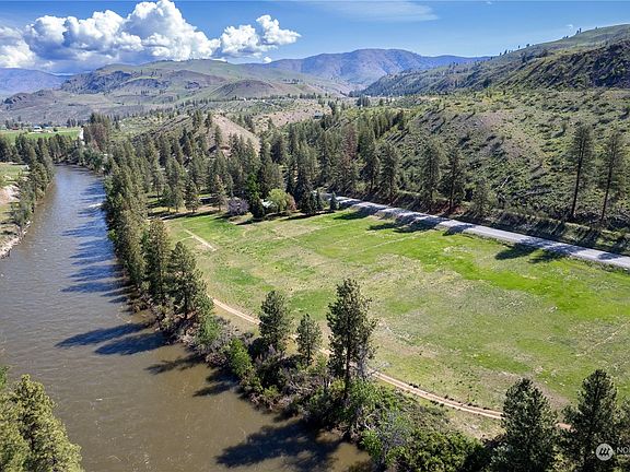 5 sun filled acres on the Methow River & bordering Benson Creek! Charming, updated farmhouse. Private & impressive sandy beach located at the confluence of Benson Creek & Methow River. Heavenly summer retreat! Enjoy dramatic changing light move across McClure Mtn. Desirable mix of scattered pine & lush open pasture. Mature landscape w apricots, lilacs & asparagus! Primary bedroom w ensuite BA. 2 add'l bedrooms & 2nd BA. Lots of storage for gear & toys in multiple outbuildings-50X30 metal shop, garage, garden shed. Includes irrigation well & equipment to maintain green fields. Partially furnished & ready for your Methow adventure to begin. EZ access off Highway 153 & only 5 miles to Twisp! Adjacent lot available for purchase with home.